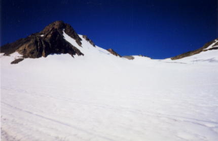 Oben rechts im Bild immer die kleine Herausforderung zusätzlich zur Gletscherbesteigung.