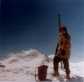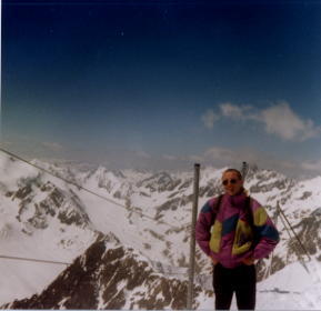 nur hier oben zu finden ist. Hier waren wir durch das Pitztal auf dem Hinteren Brunnenkogel. Eine Fahrt mit einer Tunnelbergbahn (so wie in Kaprun) und oben dann noch mal ein Stück mit einer Kabinenbahn. Dann ist man auf 3.300 Meter. Dünne Luft und Schnee, Schnee und noch mal Schnee. Weiter unten - am Ende der Tunnelbahn - kann man aber wunderbar auch im Schnee toben - ohne Gefahr... (im Hintergrund neben meiner Mutter die Wildspitze 3.768 M)