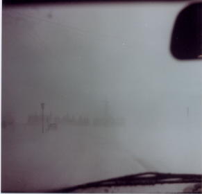 die Bundesstrassen und Autobahnen aussehen, wenn es so richtig stürmt. Dichtes Schneetreiben