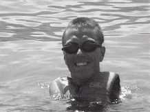 See, um auf der großen Brücke wieder über den See zum Zeltplatz fahren zu können. (Zeit: ca. 3 h)Den anderen Tag fuhr ich mit dem Auto zu den ausgewiesenen Parkplätzen für Wanderungen. Die Natur schonend hielt ich auf dem ersten Parkplatz, der sich am Fuße eines Berges befand und wo auch die befestigten Wege endeten. Nach ca. 1 Stunde Marsch erreicht ich dann immer die Parkplätze, die die Franzosen nutzten. Diese waren zwar nur auf Waldwegen zu erreichen, aber die Franzosen scheinen nicht unbedingt gerne zu Laufen. Ich jagte meist in hohem Tempo hinauf, um erstens die Stille zu genießen, die ich vor den Massen noch genießen konnte, und zweitens schon vor der Mittagshitze die anstrengendsten Aufstiege hinter mir zu haben. Neben vielen wildlebenden Murmeltieren und auch Gämsen war auch die Natur selbst mit kleinen Bergseen und schönen Wasserfällen ein Erlebnis. Einen Tag traf ich eine vierköpfige französische Familie auf einem der ersten Aussichtspunkte. Der Vater legte dann aber sein Fernglas in meinen Rucksack, was ich erst 3 Gipfel weiter bemerkte. Da ich aber deren weiteren Weg kannte, ging ich in die Hochebene und konnte die Familie auch gerade beim Mittagessen auffinden. Diese waren höchst erstaunt über meine Ehrlichkeit und sofort war ich zum Essen eingeladen. Wahnsinn: Hühnchen gebraten, Weißbrot, Brot, Käse, Wurst und Marmelade, Wasser und Pastise sowie Salat und Obst. Da erntete ich natürlich einen Lacher, als ich meine Wurstsemmeln, die Bananen und Wasser herausholte. Ein super Tag ! Ja und der dritte Tag wurde mit einem Lauf in den Hang hinter die Berge gestartet. Das war zwar enorm schwierig, dafür war ich auch schnell wieder zurück, denn egal welchen Ausflug ich immer unternahm, ich musste bis ca. 3 Uhr an Nachmittag wieder am See sein. Termine im Urlaub? Nein, nicht doch, aber um diese Zeit wurde der Wind am See immer stärker und somit lohnte es sich, das Windsurfbrett runter an den Strand zu bringen und das Segel aufzuspannen. Dann konnte ich mich ausruhen und in der warmen Sonne liegen. Dann aber, irgendwann am Nachmittag, ging es endlich los. Raus, im Neoprenanzug (kurz), und dann endlich wieder Surfen. Anfangs hatte ich noch viele Probleme, sicher im Wind zu fahren, aber ohne Zeitdruck ging es zusehends immer besser. Die Hitze war kein Problem, da ich unfreiwillig öfters ins Wasser fiel und so alles wieder kühl wurde. Aber ein paar Tage später musste ich schon eine Kappe mitnehmen, die mich vor der Sonne schützte. Auch zog ich den Neoprenanzug nur noch halb hoch, da es schon unangenehm warm wurde bis ich mal wieder 'wasserte'. Im Laufe der Zeit kam es auch immer wieder zu gemeinsamen Ausfahrten mit Jack oder seiner Tocher Marie. Sogar lustige Wettkämpfe entwickelten sich, die schon zu fast unglaubliche Szenen am Strand führten. Marie sagte dann immer: "Das ist nicht mein Vater!"
