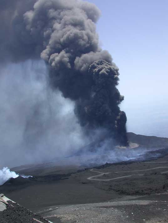 Weiterhin berichtete sie mir, das die Forscher oben sehr nervös wären, da zwei unterschiedliche Theorien zum weiteren Verlauf vorlägen. A) Die gesamte Südostflanke (etwa die Stelle, wo ich mit Hilde Mittag gegessen hatte) könnte in einer St.Helena-ähnlichen Explosion wegrutschen. Oder B) Der Ausbruch würde in der jetzigen Form, aber stärker und mit mehr Lava fortgeführt werden.