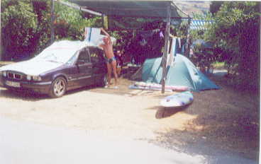 Der Campingplatz war auch offen. Jetzt im Sommer war dieser aber belebter, was ich an dem Kinderlärm und der Animation am Swimmingpool schnell merkte. Leider hatten die Besitzer gewechselt, so dass mich zuerst keiner erkannte. Ich bekam schnell einen Platz zugewiesen und baute alles für einen längeren Aufenthalt auf. Zelt mit Unterlage als Teppich, die Matratze und die Kleidungsausstattung in den Koffern und Taschen hinein und in der hinteren Verlängerung der Vorratsschrank. Somit war das Auto wieder etwas entlastet.