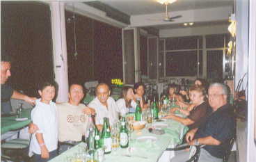 So fuhren wir Richtung Patti in ein nahes Restaurant (Villa Smeralda) mit schönem Blick auf das Meer hinaus, den ich aber mehr erahnen musste, leuchteten doch die Lichter der Liparischen Inseln in der Ferne. Lorenzo und die anderen Familien waren schon da und es gab eine wilde Begrüßungsrunde. Zudem hatte Lorenzo Namenstag, was mir auch gerade erst gerade erklärt worden war.