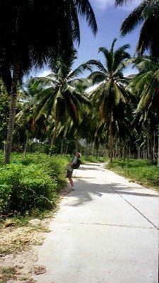 das umliegende Gelände. Dann ging es wieder bergab durch den Palmenwald wo Einheimische fleissig Kokuss