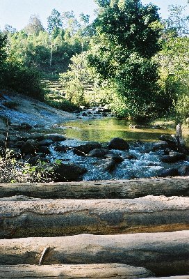 Wasserfall führte vorbei an einem Elefantentrainingslager und wurde danach um einiges steiler.